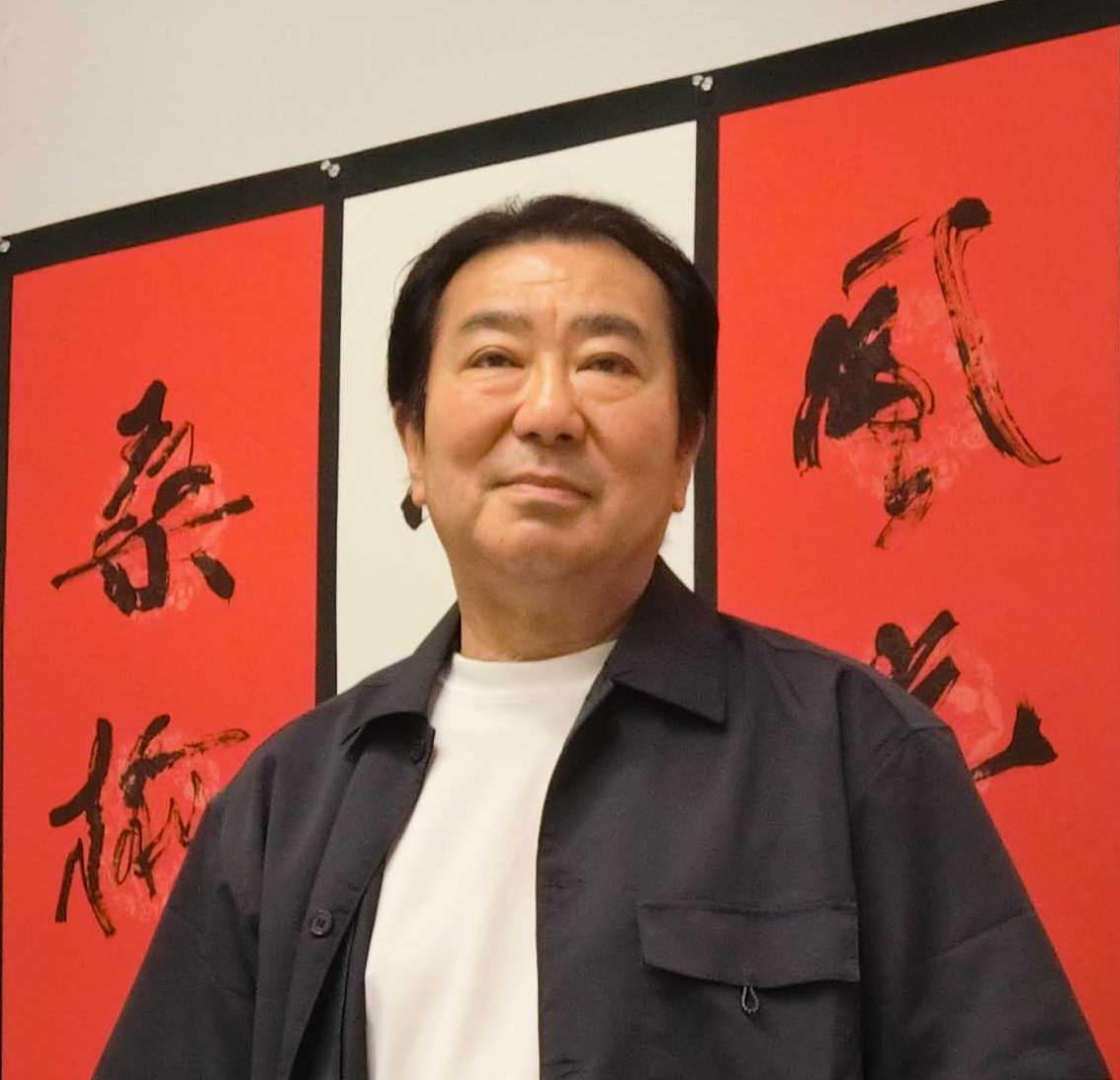 墨戯展作品前の菅井会長