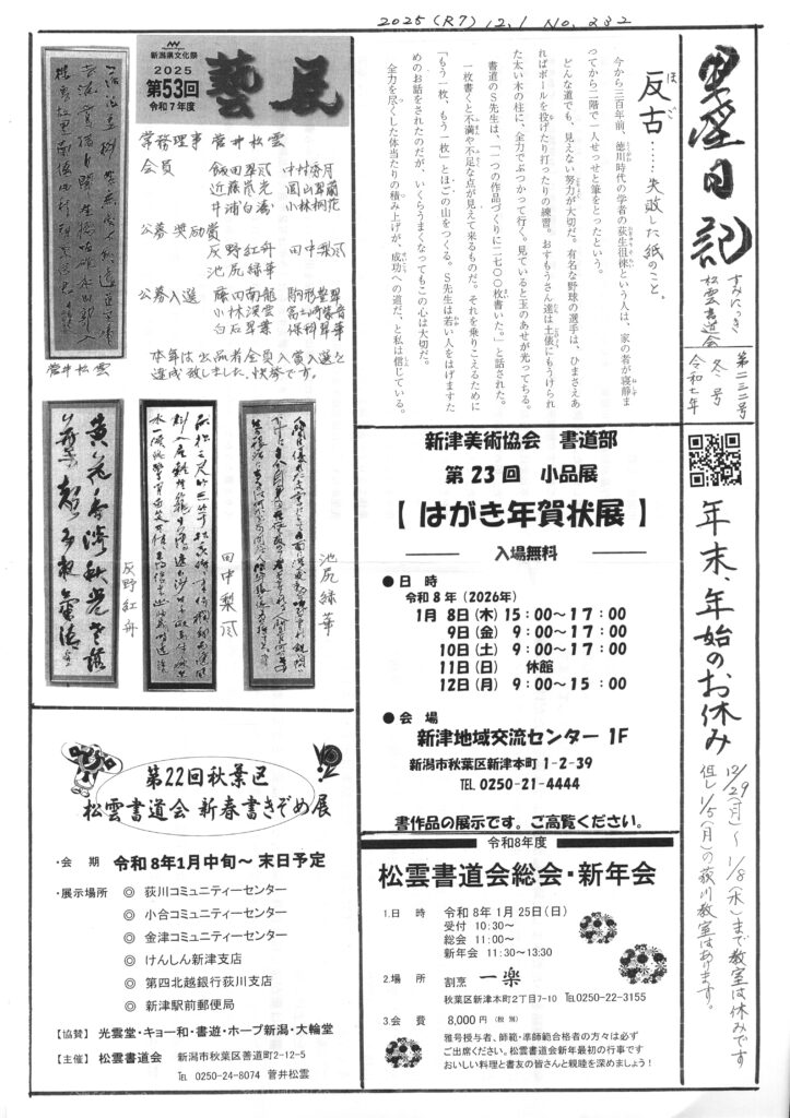 「墨日記」冬号、令和七年 第232号をホームページに掲載いたしました。