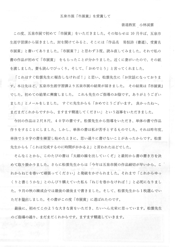 ・小林 渓雲さん:『五泉市展』にて「市展賞」受賞