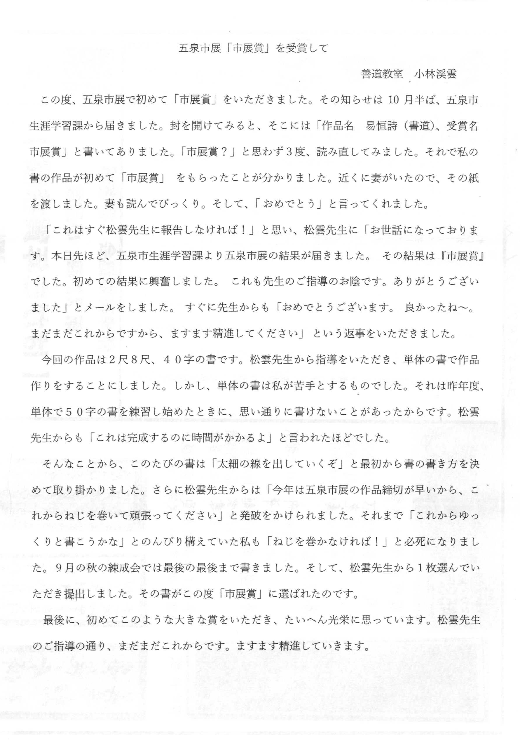 ・小林 渓雲さん:『五泉市展』にて「市展賞」受賞
