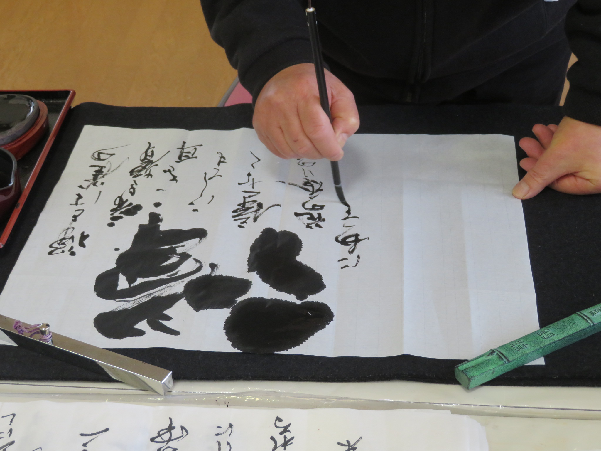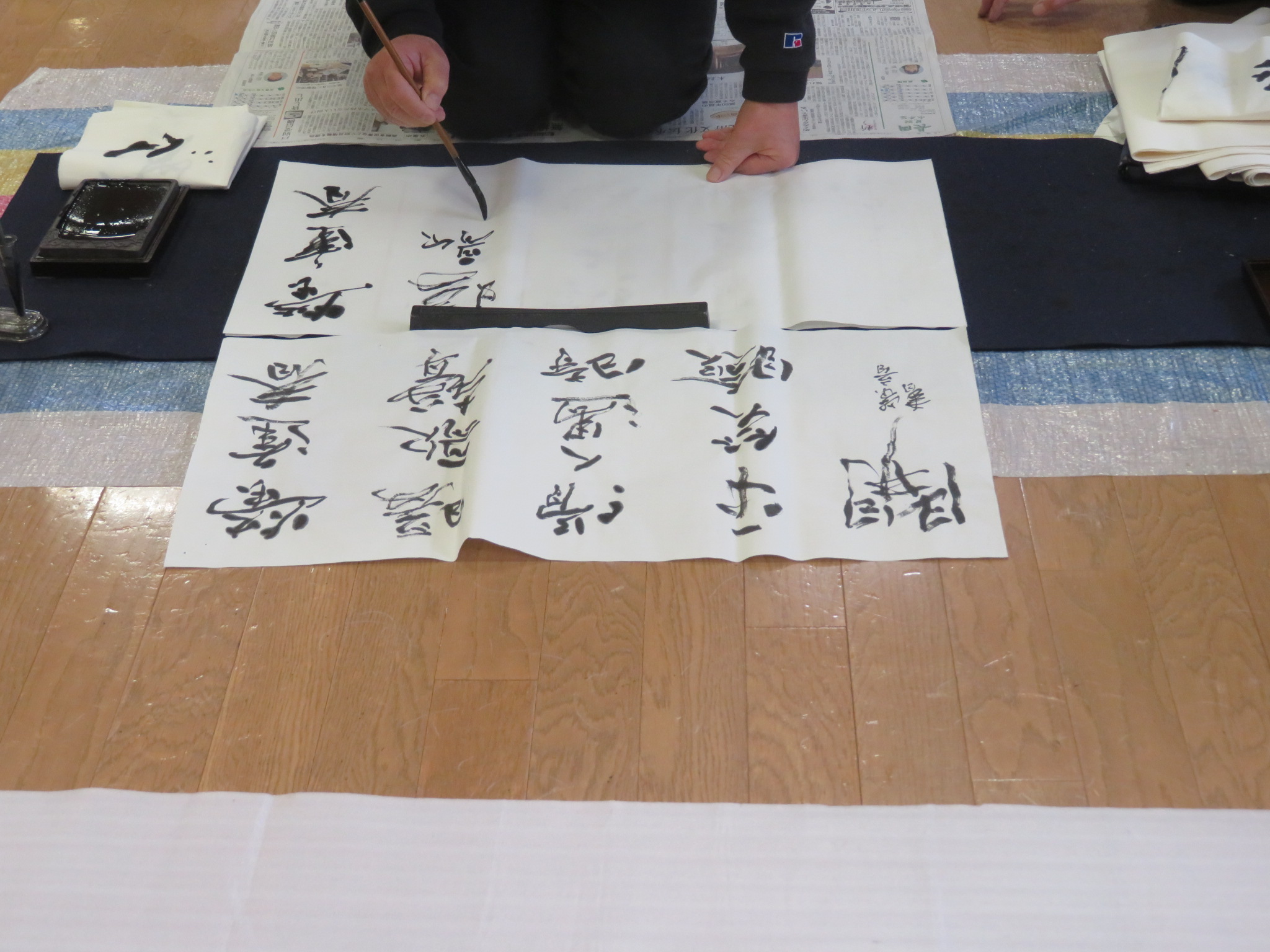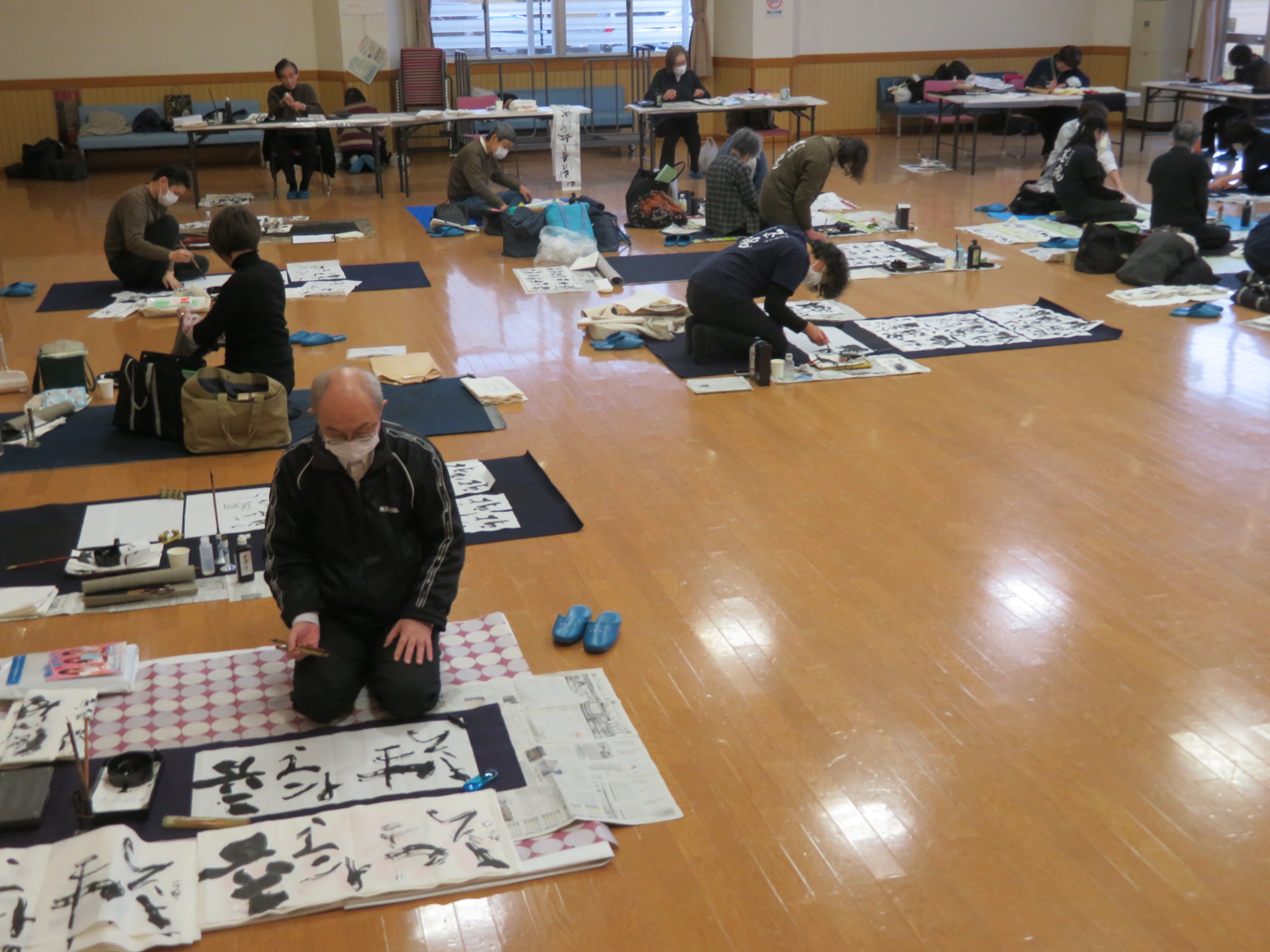 ・午後:サブ作品の仕上げと個別指導 午後からは、それぞれ錬成で書き上げたサブ作品の草稿を元に、お手本を書いて頂き、その後今年最後の錬成に集中しました。錬成の最後には、菅井会長から個別作品の批評をいただき、作品完成へ向けた最終調整を行いました。