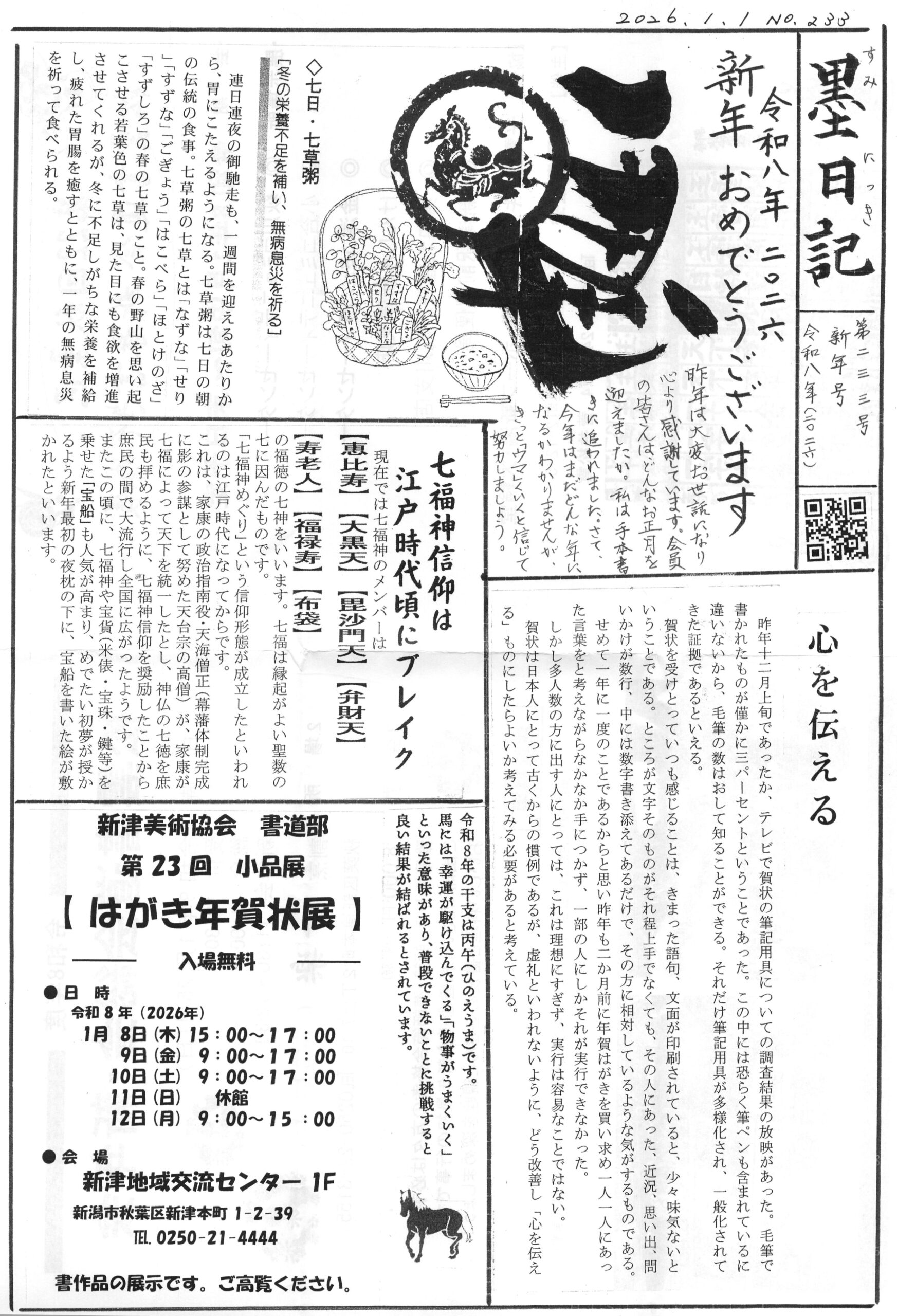 「墨日記」新年号(令和八年 第233号)をホームページに掲載いたしました。