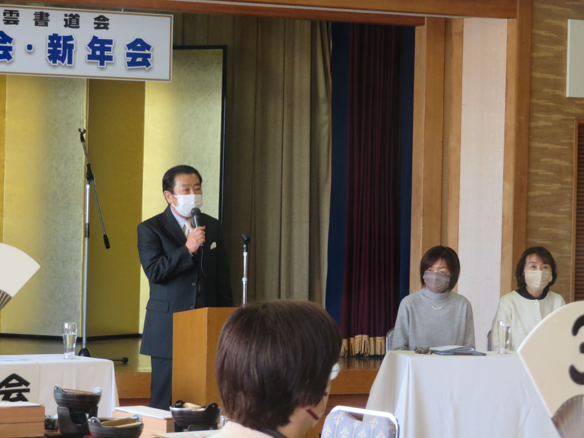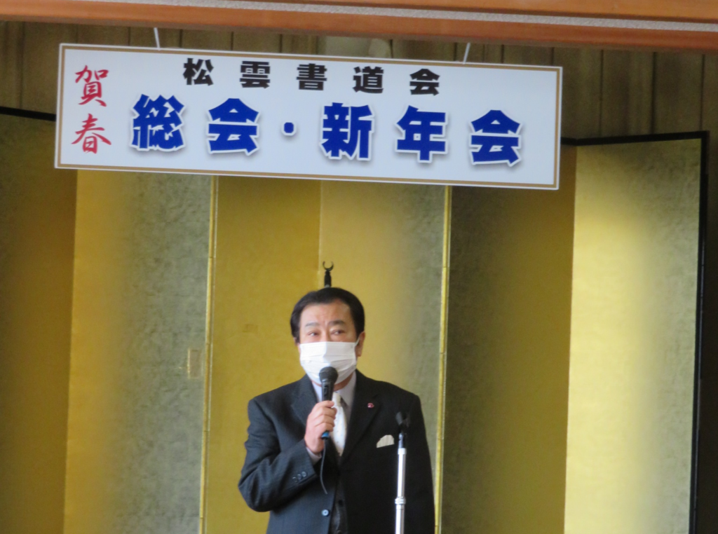 続く新年会では、菅井会長より「第45回記念墨雲展」の成功に対する御礼とともに、目前に迫った「第30回記念書花展」へのさらなる精進と一致団結を呼びかけるご挨拶をいただきました。
