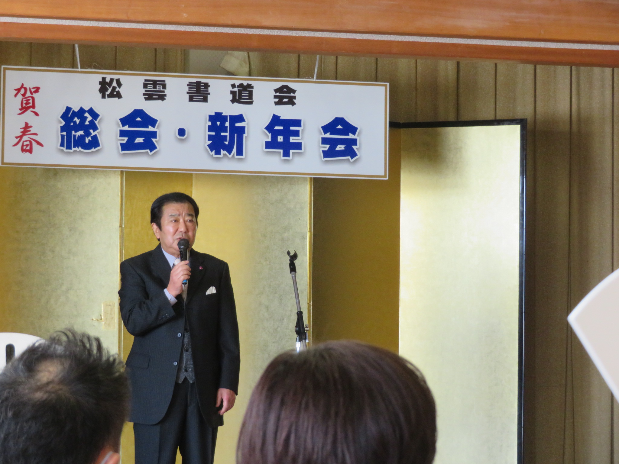 第一部の総会では、菅井会長より昨年の歩みへの感謝と、新たな年への力強い抱負が語られました。続いて役員より令和7年の事業報告、令和8年の事業計画および会計・監査報告が行われ、会員一同、本年の活動に向け気持ちを新たにいたしました。最後には、3月に控える「書花展」の連絡や「新潟玄和」の活動について活発な情報交換が行われ、充実した時間となりました。