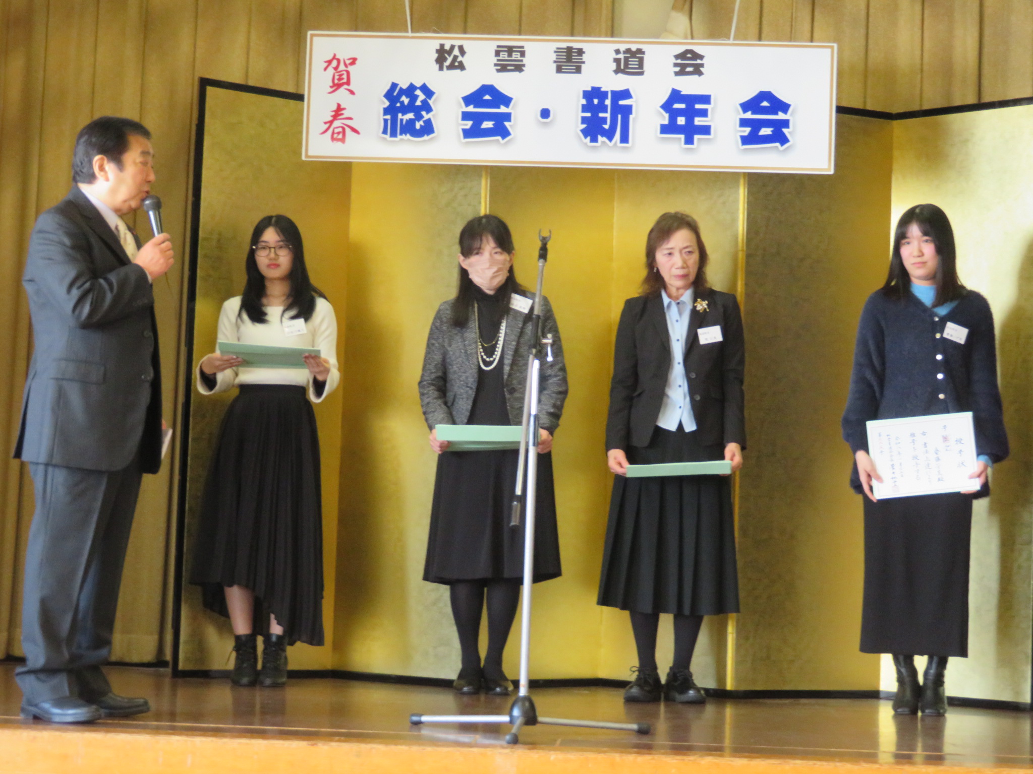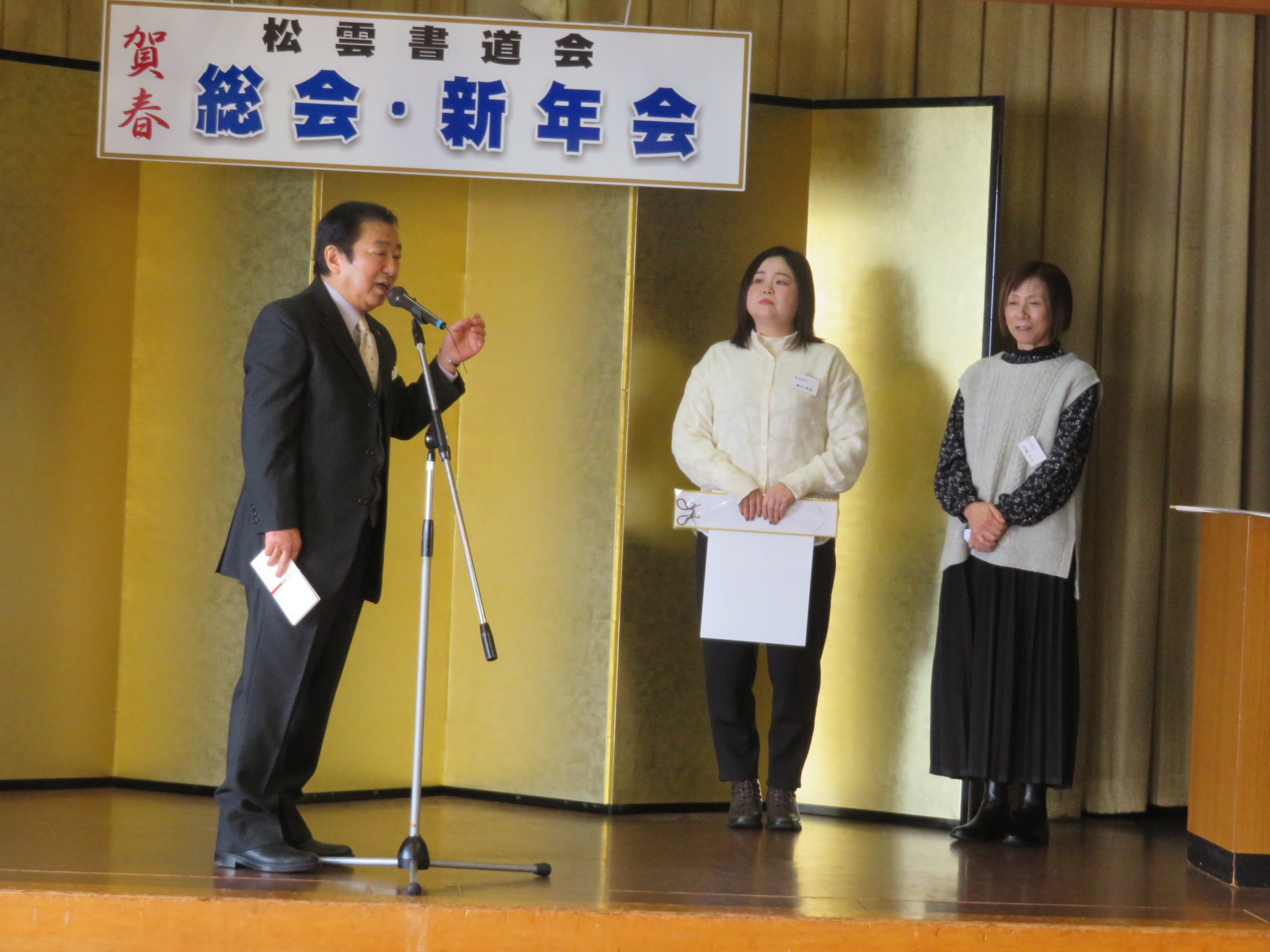 最後は、役員代表の田中梨風さんによる閉会の挨拶をもって、盛況のうちに幕を閉じました。本年も、書道を通じて心豊かな一年となりますよう、松雲書道会一丸となって歩んでまいります。