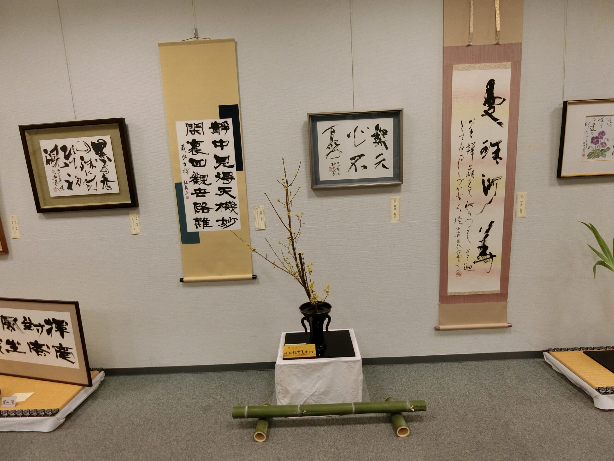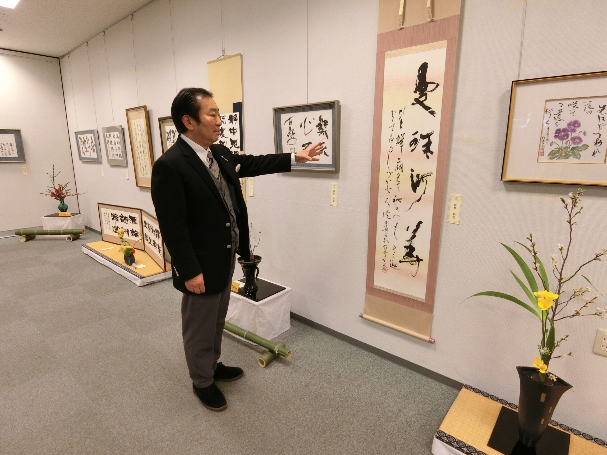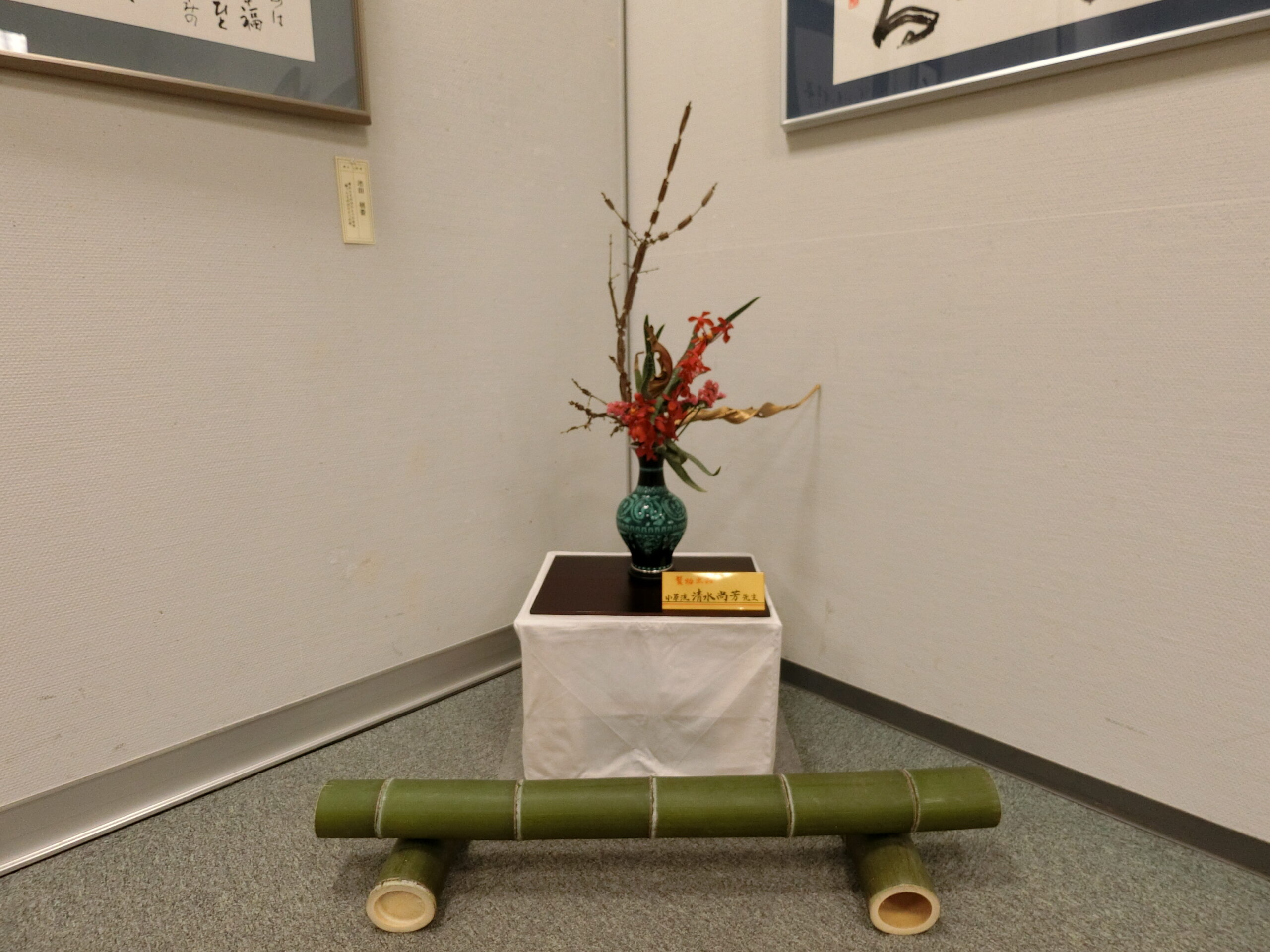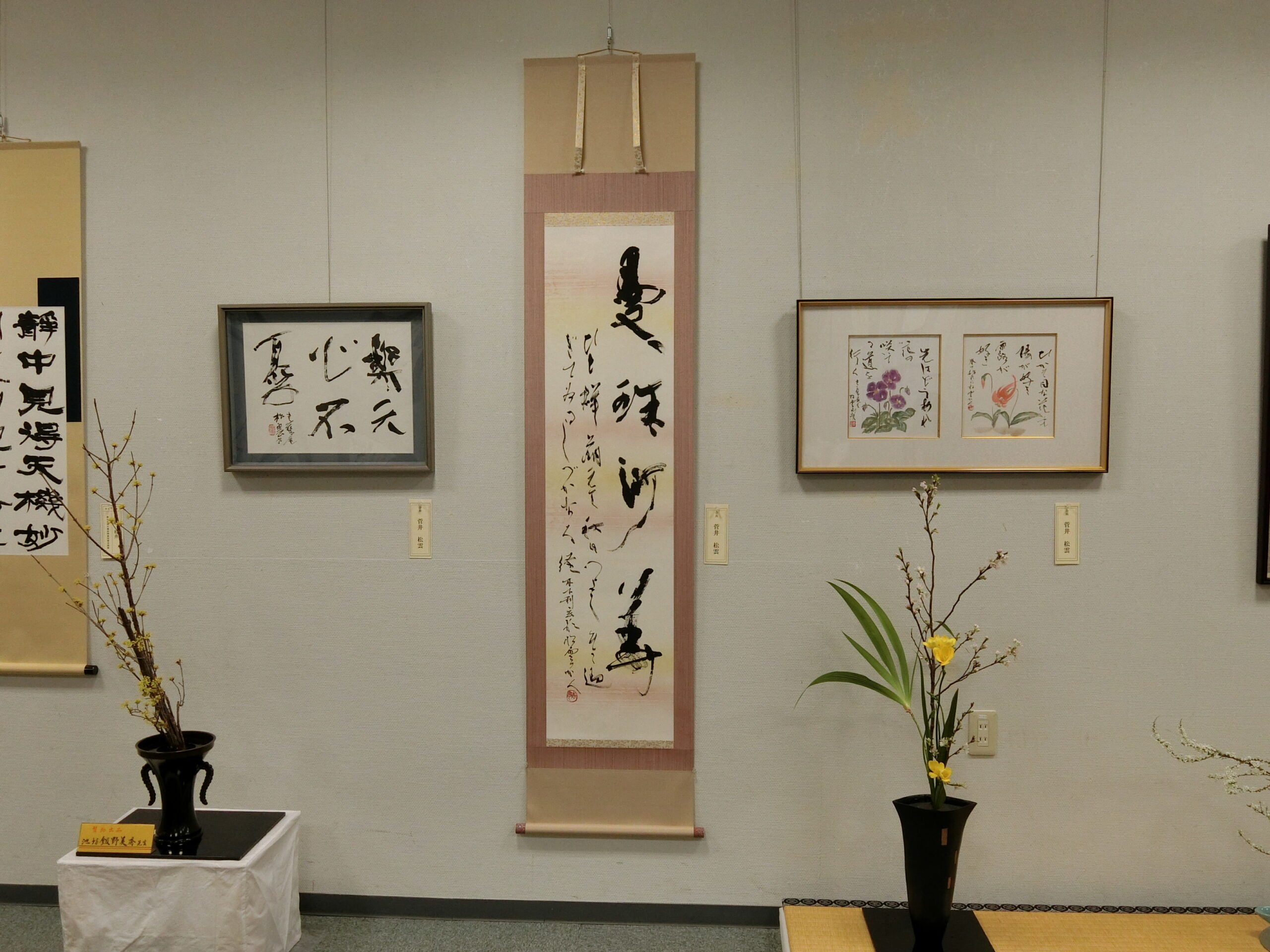 本展は、松雲書道会の菅井松雲会長、副会長をはじめとする選抜会員29名による渾身の書に、華道界の諸先生方による彩り豊かな生け花を添えた、書と花のコラボレーション展です。