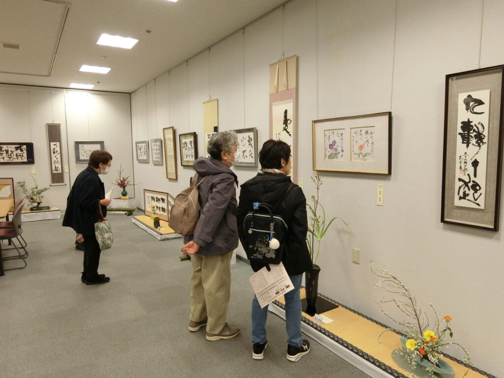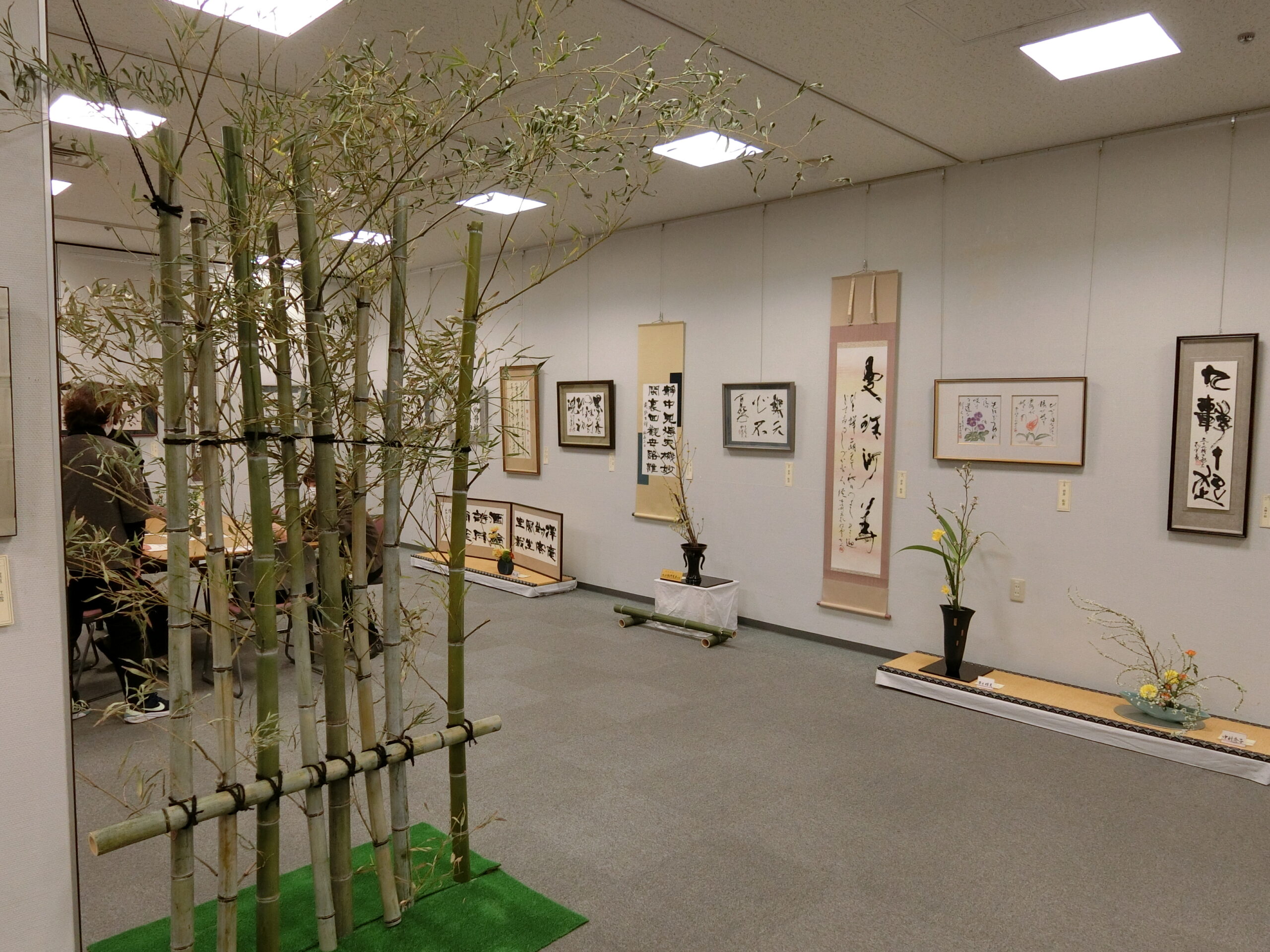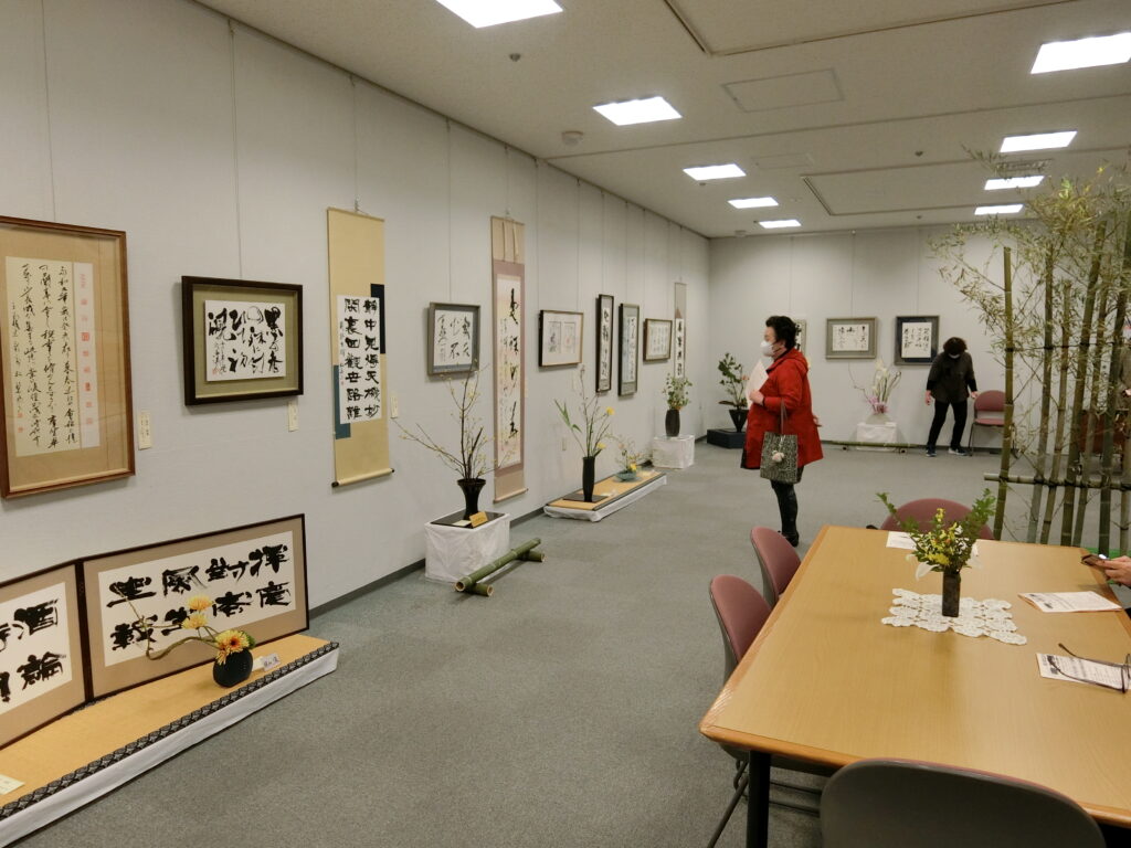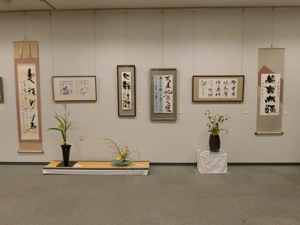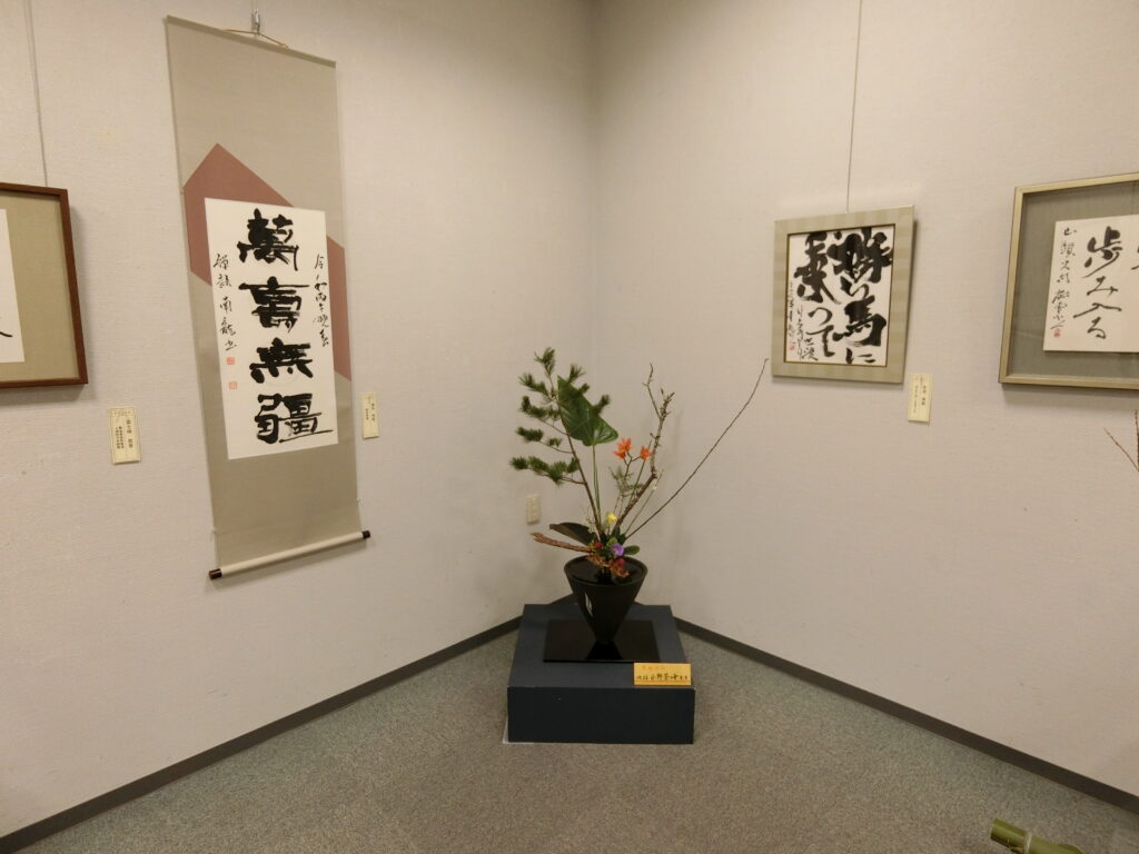 特に30回という節目を迎えた今回は、例年よりも生け花の展示を増やし、会場全体がより一層華やかな香りと美しさに包まれています。書と花が響き合い、創り出される優美な世界。初日の会場の様子を写真でご紹介いたしますので、ぜひその雰囲気をお楽しみください。