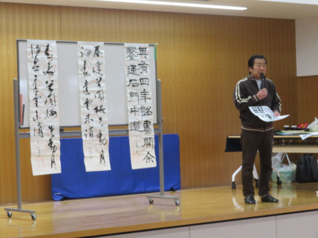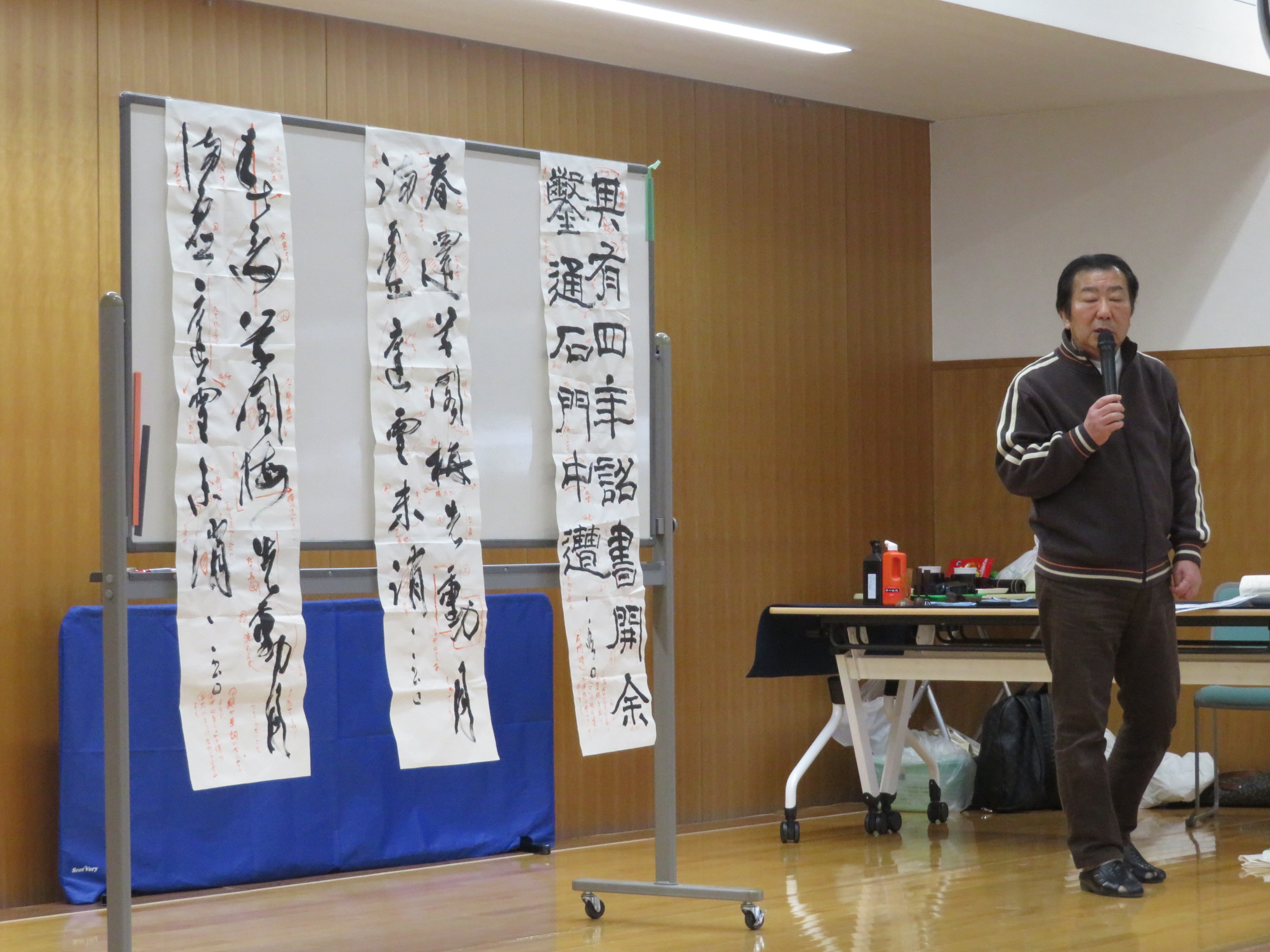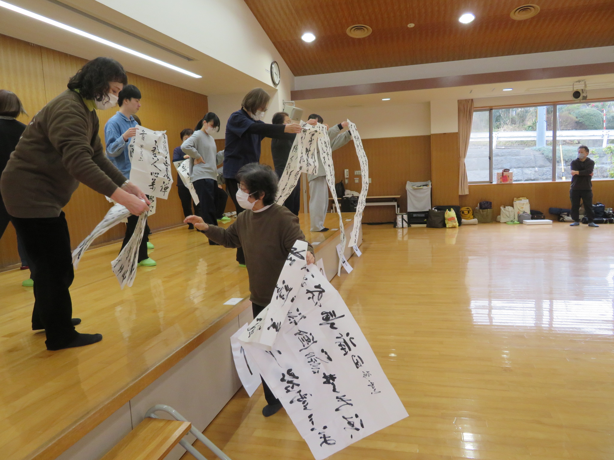 早春とはいえ、まだ肌寒い日が続いていますが、3月15日、松雲書道会による今年初めての「春の錬成会」が、新潟市秋葉区金津地区コミュ二ティセンターにて開催されました。会場では、目前に迫った昇段級試験に向け、多くの会員が参加。開講式では菅井松雲会長より、書に向き合う心構えと技術向上への激励の言葉が贈られ、背筋が伸びる思いで一日がスタートしました。